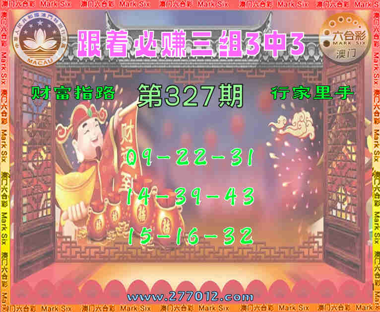 327期: ☘️『跟着必赚』 ☘️三组3中3☘️