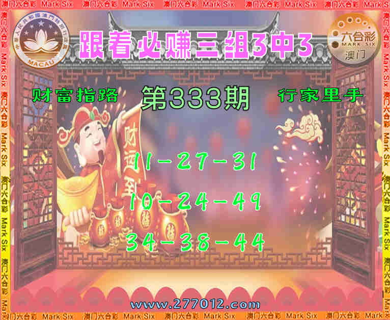 333期: ☘️『跟着必赚』 ☘️三组3中3☘️