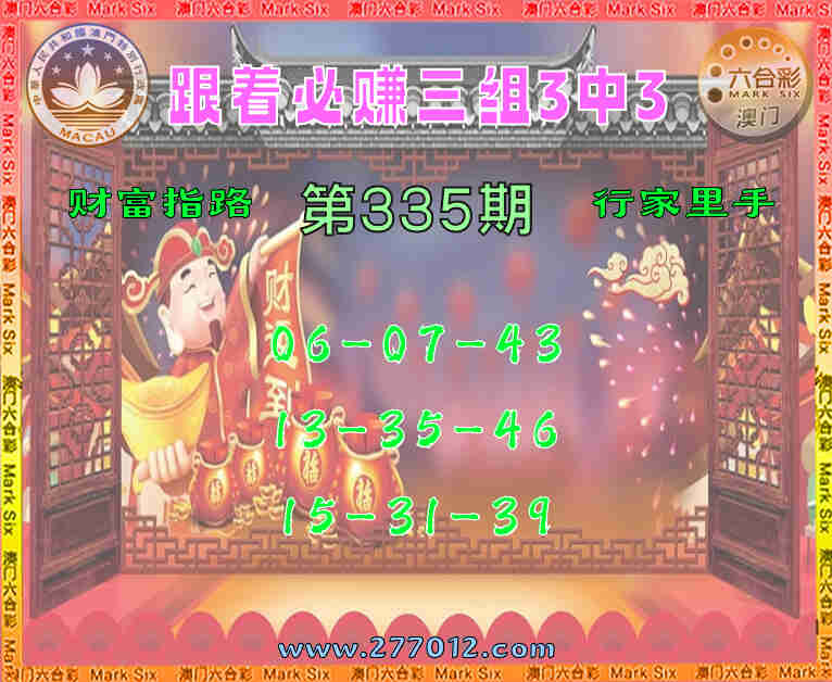 335期: ☘️『跟着必赚』 ☘️三组3中3☘️