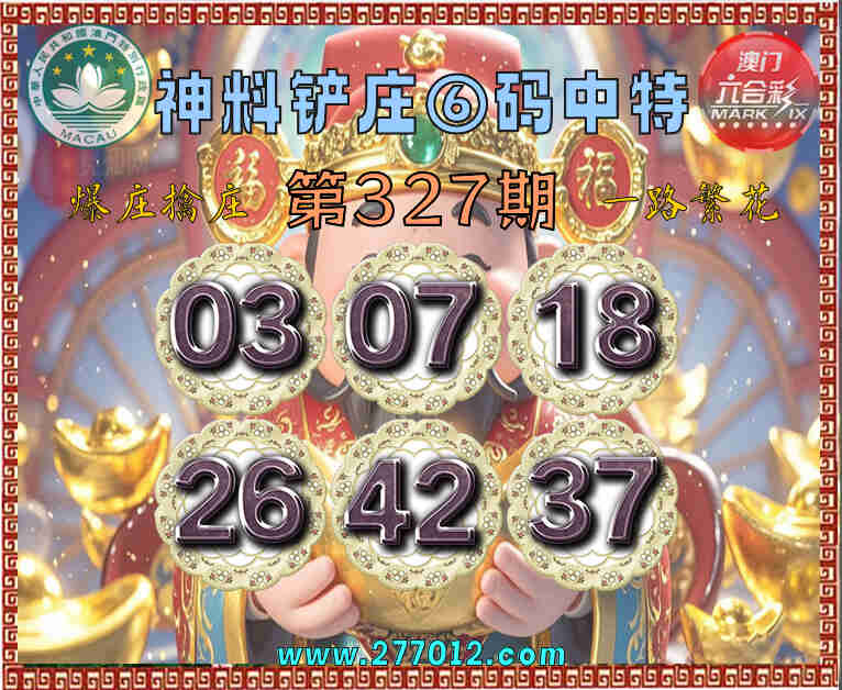 327期:【神料铲庄】 🍏⑥码中特🍏【03.07.18.26.42.37】开:37准