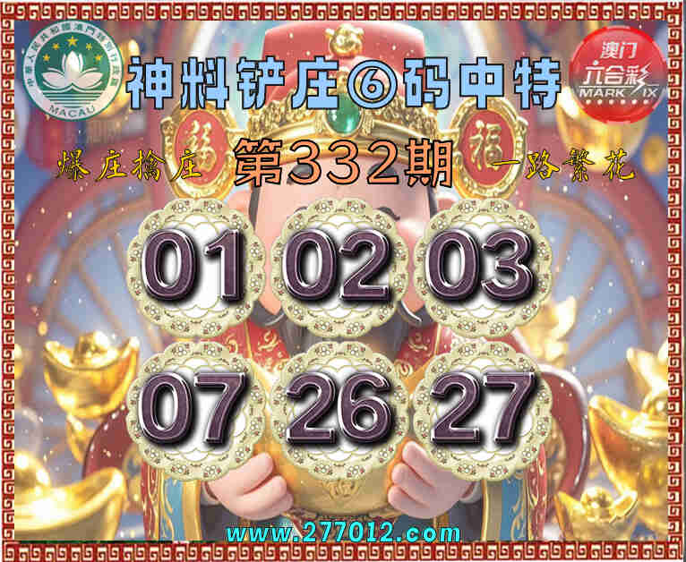332期:【神料铲庄】 🍏⑥码中特🍏【01.02.03.07.26.27】开:26准