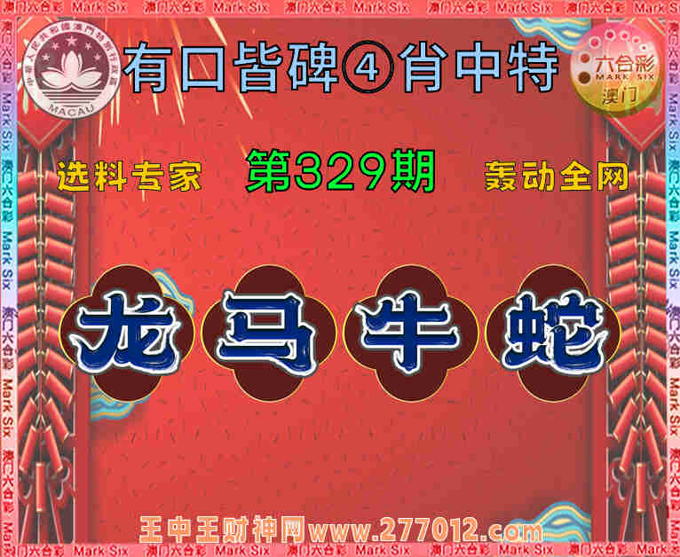 329期:【有口皆碑】 🧤④肖中特🧤【龙.马..蛇】开:牛17