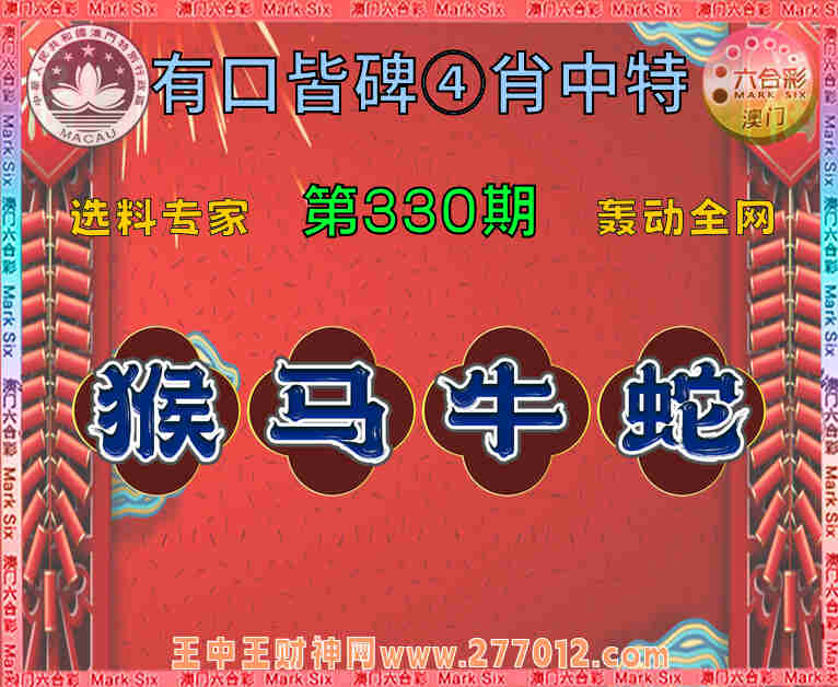 330期:【有口皆碑】 🧤④肖中特🧤【猴..牛.蛇】开:马36