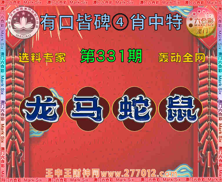 331期:【有口皆碑】 🧤④肖中特🧤【.马.蛇.鼠】开:龙26