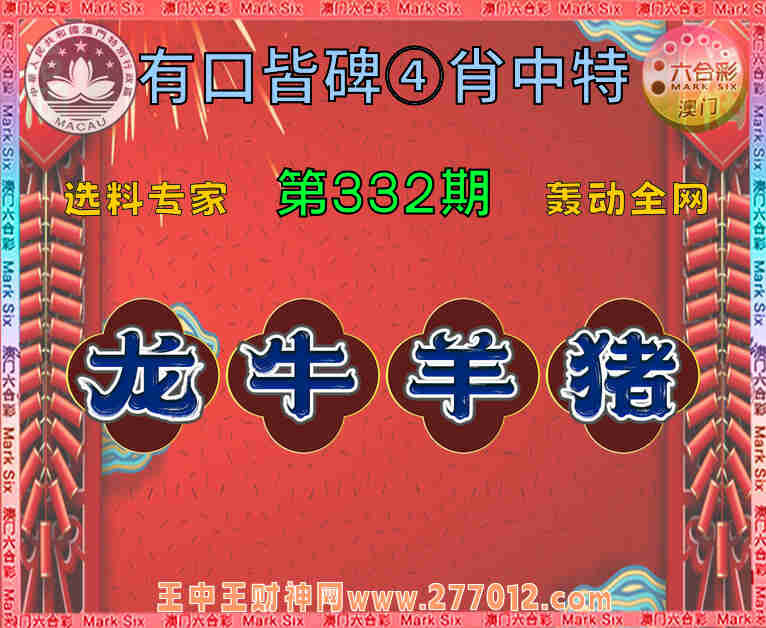 332期:【有口皆碑】 🧤④肖中特🧤【.牛.羊.猪】开:龙26