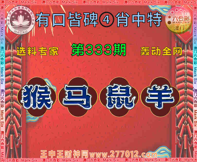 333期:【有口皆碑】 🧤④肖中特🧤【猴.马..羊】开:鼠06
