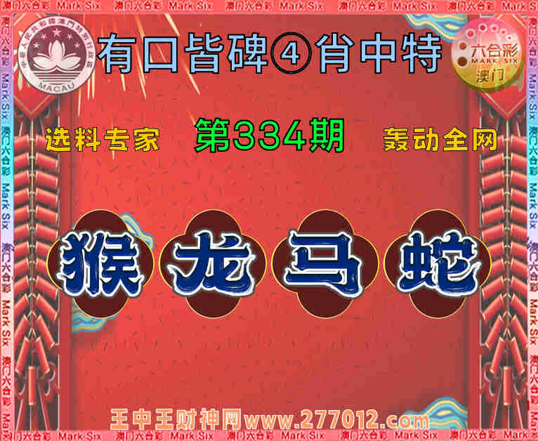 334期:【有口皆碑】 🧤④肖中特🧤【.龙.马.蛇】开:猴46