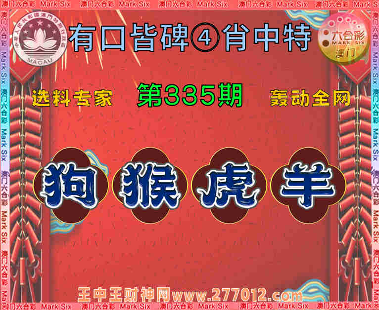 335期:【有口皆碑】 🧤④肖中特🧤【.猴.虎.羊】开:狗44