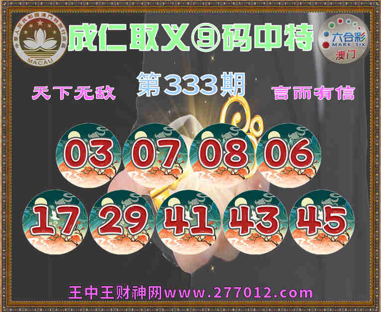 333期:《成仁取义》 🍀⑨码中特🍀开:06准